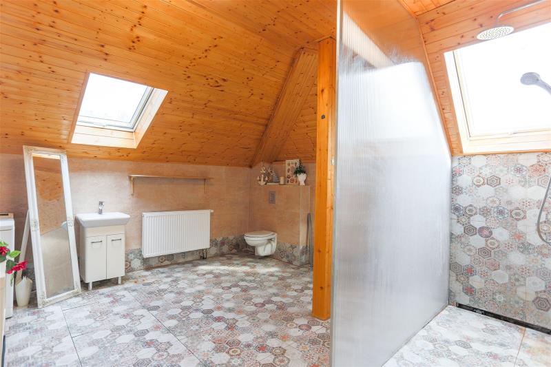 Prostorný rodinný dům 7+kk s vlastní saunou a zahradním domkem jen pár kroků od řeky Berounky – klidná lokalita a přitom 35 minut vlakem do Prahy Nabízíme k prodeji moderní rodinný dům o dispozici 7+kk s podlahovou plochou 258 m² a pozemkem o celkové ploše 1265 m² v malebné lokalitě Zadní Třebaň. Dům, postavený v roce 2024, spojuje moderní architekturu, kvalitní materiály a pohodlné bydlení. Dominantou domu je prostorný obývací pokoj s galerií a krbem, dvě plně vybavené kuchyně a 7 pokojů, což poskytuje dostatek prostoru pro velkou rodinu nebo vícegenerační bydlení. Součástí nemovitosti je samostatný zahradní domek se saunou a vlastní sprchou, ideální pro relaxaci a wellness. Dům je situován ve dvou nadzemních podlažích a jednom podzemním, má sklep, čtyři parkovací místa a moderní elektrické rozvody. Prostorná zahrada o rozloze 1108 m² nabízí klid, soukromí a krásné výhledy do okolní přírody. Lokalita poskytuje veškerou občanskou vybavenost – mateřskou i základní školu, lékaře, obchody i restaurace – a výbornou dopravní dostupnost: vlakem do Prahy cca 35 minut, dobré autobusové spojení i přístup autem. Tento dům je připraven k okamžitému nastěhování. Doporučujeme osobní prohlídku, kde nejlépe vyniknou všechny jeho přednosti a jedinečná atmosféra. Dům je v osobním vlastnictví – možnost financování hypotečním úvěrem, se kterým vám rádi pomůžeme. V případě zájmu o více informací nebo sjednání prohlídky nás neváhejte kontaktovat – rádi vám nemovitost osobně představíme.