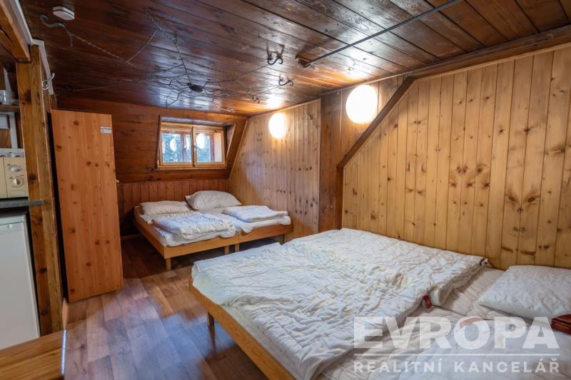 Prodej rekreačního objektu v Harrachově místní část Rýžoviště. Jedná se o jedinečnou historickou stavbu v kombinaci dřeva a kamene. Stavba je napojena na elektřinu, kanalizaci, plyn a voda je řešena lokálním zdrojem. Vytápění nemovitosti je řešeno plynovým ústředním vytápěním vč. ohřevu TUV. V roce 2024 došlo ke kompletní modernizaci předmětné technologie. Nemovitost je dispozičně řešena: 1. PP – sklep 18,5 m2, 1. NP – celkově 181 m2 a 2. NP 98 m2. 1. NP – společná hala vč. kuchyně, 2x společenská místnost, 2x ložnice, dílna, umývárna muži, umývárna ženy, 4 x WC a sklad. 2. NP – sklad prádla, a 4 x ložnice. Veškeré pokoje mají vlastní kuchyňku, součástí pokojů je kompletní vybavení a zařízení. Kapacita objektu je 31 lůžek. Nemovitost je umístěna mezi vzrostlými stromy, které zajištují naprosté soukromí. Okolní výhledy do krajiny navodí atmosféru jedinečnosti a naprostého soukromí. Pozemky, jež jsou předmětem nabídky jsou o celkové rozloze 4102 m2. Příjezdová cesta je nezpevněná, částečně řešena přes pozemky jiného vlastníka, nebo lesní cestou přes pozemky KRNAP. K dispozici jsou veškeré revizní správy, pasport nemovitosti vč. geometrického zaměření pozemku.