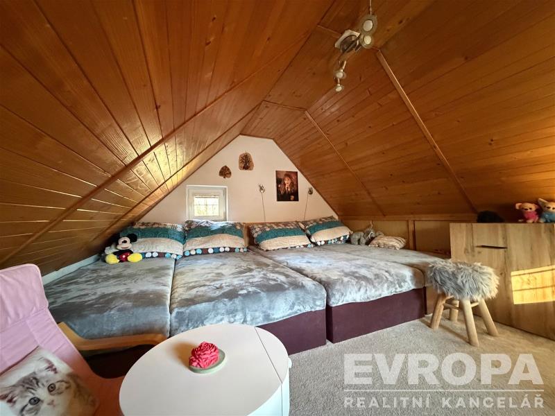 Nabízíme k prodeji krásnou, celoročně obyvatelnou zděnou chatu v klidné a vyhledávané rekreační lokalitě Kunčí u Slatiňan. Chata stojí na vlastním pozemku o celkové ploše 484 m² a její zastavěná plocha činí 22 m². Ideální místo pro víkendové pobyty, rodinnou rekreaci i jako únik z města do přírody. Dispozice a vybavení chaty • Tekoucí voda z vlastní studny přivedená do kuchyně i koupelny • Ohřev vody, splachovací WC • Kuchyň i koupelna po kompletní rekonstrukci • Plastová okna v celé chatě • Nové elektrické rozvody (sklep, přízemí, 1. patro) • Vytápění pomocí kamínek na dřevo • Celá chata je podsklepena • Ve sklepě vlastní vodárna pro distribuci vody do chaty i na zahradu • Izolace celé stavby z roku 2017 Venkovní zázemí a pozemek • Nově vybudovaná pergola (2023) o velikosti 4,5 × 5 m s kvalitním foliovým opláštěním na míru a venkovním krbem • Polozapuštěný bazén 5,5 × 3,7 m s kompletní filtrací a solárním ohřevem • Na pozemku dále kůlna/dílna a samostatný pokoj pro hosty s elektřinou • Udržovaná zahrada se vzrostlými ovocnými stromy a okrasnými keři • Pohodlný příjezd autem přímo k chatě Shrnutí Nemovitost nabízí výjimečné soukromí, dostatek prostoru pro relax i aktivní trávení času a je připravena k okamžitému užívání bez nutnosti dalších investic. Lokalita Kunčí patří mezi oblíbená místa s výbornou dostupností do Slatiňan i Chrudimi. Pokud hledáte klidné místo obklopené přírodou s kompletním zázemím, tato chata je ideální volbou. V případě jakýchkoliv dotazů mě neváhejte kontaktovat.