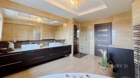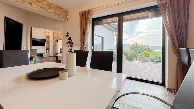Dům o třech podlažích, zkolaudovaný v roce 2005 a kompletně zrekonstruovaný v roce 2016, nabízí ideální propojení elegance, kvality a funkčnosti. Najdete zde 6 komfortních ložnic, 3 koupelny, moderní kuchyni s jídelnou, prostorný obývací pokoj s krbem, pracovnu s herním koutem (stolní tenis, kulečník), šatnu, prádelnu, dvě skladovací místnosti, posilovnu a stylový vinný sklep. Každý kout domu byl navržen s důrazem na detail, praktičnost a příjemnou atmosféru.