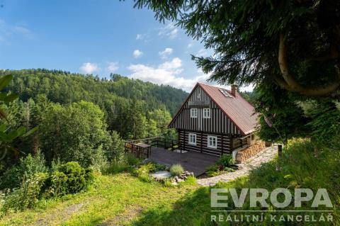 Nabízíme k prodeji stylovou chalupu v klidné lokalitě Dolní Dušnice, která prošla citlivou rekonstrukcí, která propojuje tradiční atmosféru s moderním komfortem. Nemovitost se nachází v malebné krajině s krásným výhledem na okolní lesy a přírodu. Díky své poloze poskytuje ideální prostředí pro odpočinek i aktivní trávení volného času. Chalupa má zastavěnou plochu 78 m², podlahová plocha činí přibližně 110 m² a celková plocha pozemku je 390 m². Dispozice 3+kk je prakticky řešena: v přízemí se nachází vstupní chodba s výkonnými krbovými kamny, světnice s kuchyňským koutem, ložnice, stylová koupelna, finská sauna a technická místnost s bojlerem a pračkou. Obytné podkroví nabízí prostorný pokoj s kapacitou až šesti lůžek a dostatek úložného prostoru. Chalupa dále nabízí příjemné venkovní posezení na terase, venkovní kamenný sklep a také venkovní sprchu. Vytápění je zajištěno krbovými kamny v chodbě, kachlovými kamny ve světnici, v koupelně podlahovým topením, a jako doplňkové vytápění slouží designové elektrické přímotopy. Voda je čerpána z vlastní vrtané studny, hluboké až ke dnu Jizery. Průkaz energetické náročnosti budovy nebyl zatím dodán, proto uvádíme energetickou třídu G dle zákona. Dolní Dušnice jsou součástí klidného horského údolí, ideálního pro rekreační pobyt i víkendové úniky z města. Nejbližší občanská vybavenost je v Jablonci nad Jizerou, kam dojedete za pár minut. Milovníci zimních sportů ocení blízkost lyžařských areálů jako je Kamenec, Rokytnice nad Jizerou, Paseky nad Jizerou či Harrachov. V létě potěší možnosti turistiky, cyklovýletů i sběru hub v okolních lesích. V případě zájmu mě neváhejte kontaktovat pro více informací nebo domluvení prohlídky.