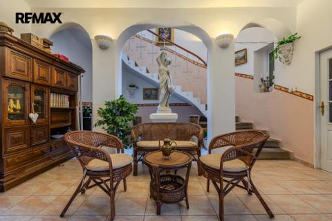 Celková užitná plocha domu je 489 m2 včetně sklepů (84m2). K domu náleží udržovaná zahrádka, dílna a prostor pro relaxaci s pergolou.