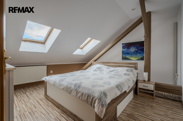 Dům je ideální pro rodinu, která chce do nemovitosti přesunout i podnikání, nebo nebytové prostory pronajmout. Obě bytové jednotky je nutno oddělit, jsou propojené schodištěm. Je zde i možnost rekolaudace na 1+1 (32,79m2) a 2+1 s příslušenstvím (42,08m2) v 1.NP, vybudovat v domě kvalitní 4 bytové jednotky, případně je využitelný pro vícegenerační bydlení.