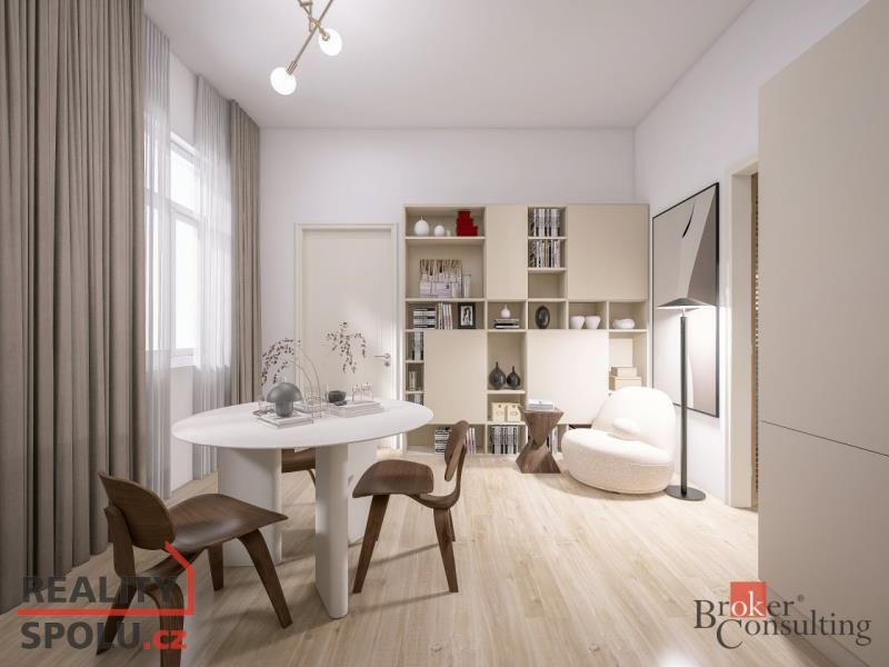 Změnou aktuálních dispozic a celkové rekonstrukce by se z tohoto domu mohlo opět stát útočiště několika rodin ve velmi komfortním bydlení, které by se dalo elegantně zkombinovat s původními, velmi zachovalými prvky, kterým může dominovat krásně zachovalé kamenné schodiště. Jak by mohl vypadat takový byt po rekonstrukci v aktuální dispozici si můžete prohlédnout ve fotogalerii přímo za danou místností v aktuálním stavu.