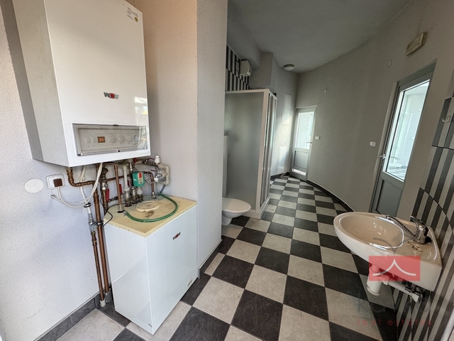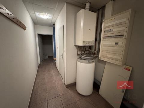 Dispoziční členění: 1.NP (250 m2) - kancelářské či obchodní prostory, sociální zázemí č. 1 – kuchyňka, chodba se třemi vstupy z prostoru, umyvadlo s topným žebříkem, WC s umyvadlem a topným žebříkem, skladový prostor, sociální zázemí č. 2 – kuchyňka, chodba se třemi vstupy z prostoru, WC s umyvadlem, skladový prostor, technická místnost (samostatný plynový kotel, který vytápí 1.NP).