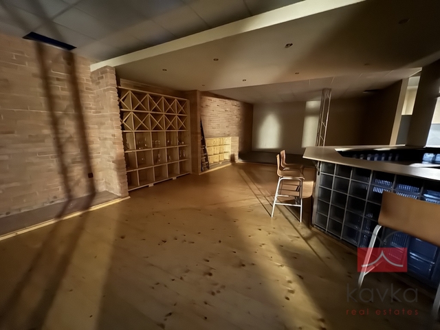 Dispoziční členění: 1.PP (250 m2) – prostor s širokou škálou využití (club, vinárna, kavárna), WC pro imobilní, šatna se sprchou a WC pro personál + technická místnost (samostatný plynový kotel, který vytápí 1.PP), úklidová komora, WC – muži, WC ženy.