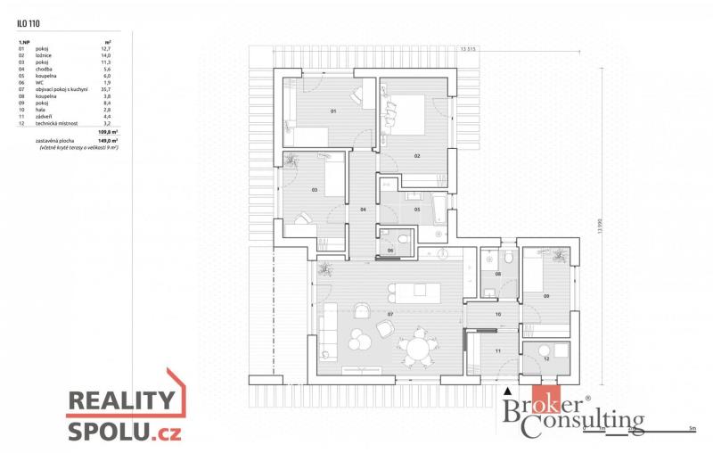 S potěšením Vám představujeme jedinečnou příležitost k pořízení moderní dřevostavby (možnost i zděné verze) ve fázi projektu s výstavbou na klíč od renomované společnosti ILO DOMY. Tento jednopodlažní dům s kombinací rovné a sedlové střechy s podlahovou plochou 110 m2 nabízí komfortní dispozici 5+KK, která je ideální pro rodinné bydlení.