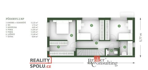 • Prostorná chodba se schodištěm (11,32 m²)