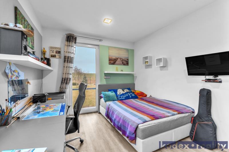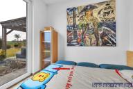 Nabízíme Vám exkluzivně na prodej částečně vybavený rodinný dům 4+kk v obci Smržov nedaleko Smiřic. Jedná se o přízemní dřevostavbu o vnitřní užitné ploše 106,86 m2 na vlastním pozemku o celkové výměře 826 m2. Dispozice: krytý vstup, zádveří s vestavěnou skříní a technickou místností, obytná místnost s kuchyňským koutem se spíží, chodba s přístupem na půdu, koupelna s vanou, sprchovým koutem a saunou, komora, ložnice, dětský pokoj a pracovna a krytá terasa. Vedle RD stojí dílna a sklad na kola, motorky apod. Před domem je postaveno velké garážové stání pro 2-3 auta včetně dodávky. Pozemek je kompéletně oplocen a vpředu je elektricky ovládaná vjezdová brána. Okrasná zahrada je vybavena zavlažovacím systémem, venkovní sprchou, bazeném a krytou terasou. Dostupné jsou tyto inženýrské sítě (elektřina 3x25A, vodovod + studna, splašková kanalizace, akumulační nádrž na dešťovou vodu, internet, STA). Vytápění objektu zajišťují elektrické podlahové kabely a také krbová kamna s externím komínovým tělesem. Ohřev vody zajišťuje elektrický boiler. K dispozici je rovněž rekuperační jednotka umístěná v půdním prostoru, která zajišťuje optimální cirkulaci vzduchu v interiéru. Budova má také instalovány vnější rolety na el. pohon. Obec Smržov má dobrou občanskou vybavenost (obecní úřad, integrovaná doprava, dětské hřiště a sportovní areál). Zbytek je k dispozici v nedalekých Smiřicích. Výhodouje rovněž dobrá dostupnost na nájezd na dálnici D11, ale také blízkost lesa. Dům je k nastěhování ihned po dohodě s vlastníkem. Stejně tak rozsah vybavení RD je možno dohodnout. V případě oboustranného zájmu není vyloučena možnost směny nemovitostí. Bližší informace Vám sdělí makléř. Cena 9.790.000,- Kč včetně služeb RK