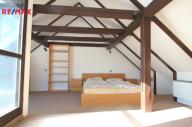 Po dřevěném schodišti se dostanete do patra. Najdete zde opravdu kouzelný pokoj, který může sloužit například jako dětský pokoj nebo pokoj pro hosty. Bez problémů se zde vyspí čtyři lidé a místnost přesto působí velmi vzdušně.