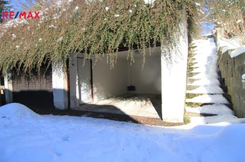 K domu náleží dvojgaráž umístěná přes ulici a za ní terasovitá zahrada, která přímo navazuje na louky a otevřenou krajinu. Větší návštěva může využít veřejné parkoviště vzdálené asi 150 m od domu.