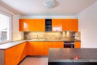 Po vstupu do domu se nachází předsíň, ze které se vstupuje do hlavního obytného prostoru. Ten tvoří velkorysý obývací pokoj propojený s kuchyní, která je laděna do výrazné oranžové barvy a dodává prostoru energii a moderní charakter. Obytný prostor působí velmi otevřeně a je ideálním místem pro každodenní rodinný život i setkávání s přáteli.