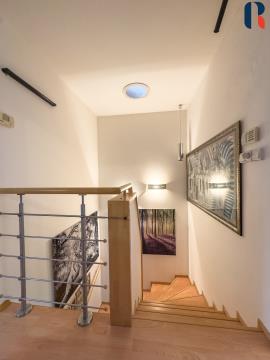 Srdcem domu je velkorysý obývací pokoj s krbem, odtud je vstup do zahrady. Vychutnejte si odpoledne na příjemné zahradě domu nebo si zaplavte ve vlastním bazénu. Dům je plně zařízený (zůstává veškerý nábytek a velké spotřebiče), ale též vybaven všemi moderními technologiemi. Nemovitost se nabízí se všemi technologiemi a kompletním vybavením, stačí se jen nastěhovat.