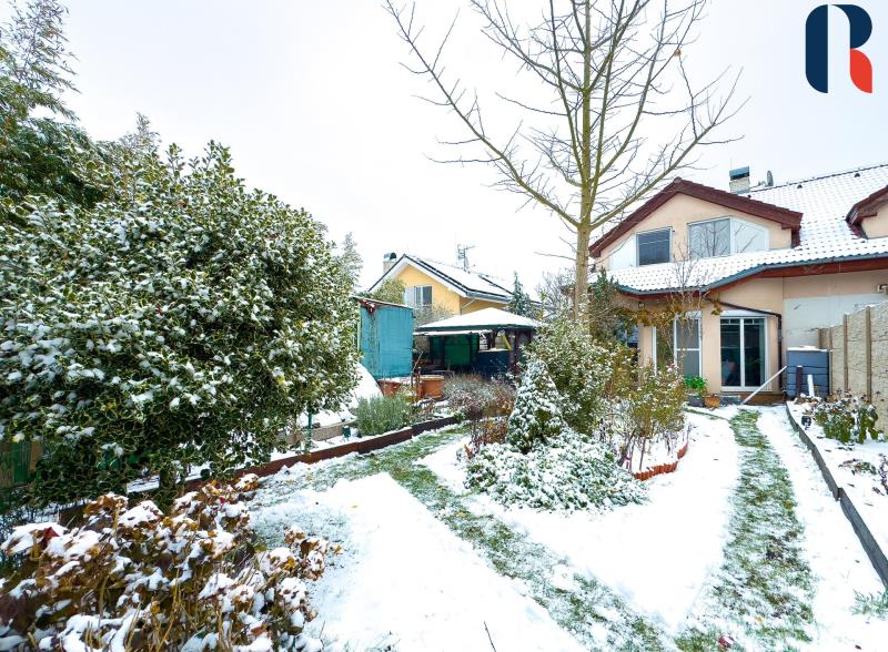 Velkou výhodou je rohové umístění domku: více klidu, větší pozemek a pouze jeden přímý soused. Zahrada o velikosti 282 m2, na které se nachází vyhřívaný bazén s protiproudem vybízí k trávení volného času a relaxaci. Zahrada je udržovaná a je kombinací okrasné a užitkové, v červnu 2025 byl postaven v části zahrady nový plot, vyhřívaný bazén je kompletně přepláštěn.....