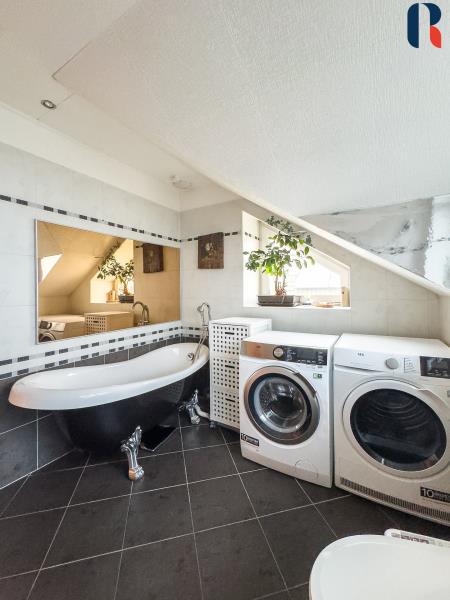 Praktická dispozice 4+1 se 126 m2 podlahové plochy (do které není započítána pochozí půda), zajišťuje pohodlí a komfort pro celou rodinu. V přízemí se nachází velkorysý obývací pokoj (35 m2) s krbem, kuchyň, koupelna se sprchovým koutem, technické zázemí, 2xkomora. V patře jsou 3 pokoje, aktuálně využívané jako 2 ložnice a pracovna. Dále koupelna s vanou a komora. Z chodby je přes vyklápěcí dveře přístup na zpevněnou, pochozí půdu. Půda je zateplená kombinací sklovinové vaty a foukané izolace. Ideální místo pro uskladnění všech mimo sezónních věcí.