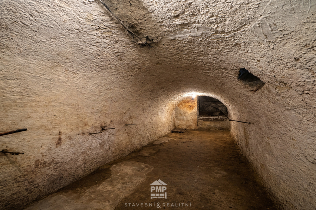 Součástí domu je také navazující prostor, který může sloužit jako stodola, garáž nebo dílna, a zároveň umožňuje průchod na zahradu za domem. V tomto prostoru se nachází vstup do sklepa o velikosti 14 m², který poskytuje další praktické úložné zázemí.