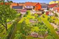 Zahrada byla při rekonstrukci domu také nově zbudována, v horní části je využívána jako částečně užitková pro pěstování, spodní část zahrady s jezírkem slouží jako okrasná.