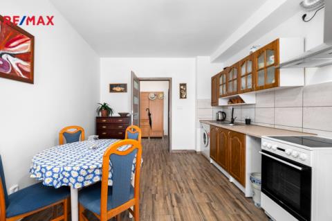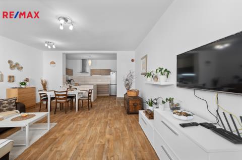 Byt 3+kk disponuje vstupní chodbou (hala), světlého obývacího pokoje s navazující jídelní částí a kuchyňským koutem (plně vybaven spotřebiči), dalších dvou samostatných pokojů a koupelny (vana, sprchový kout) s WC.