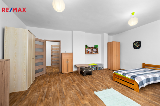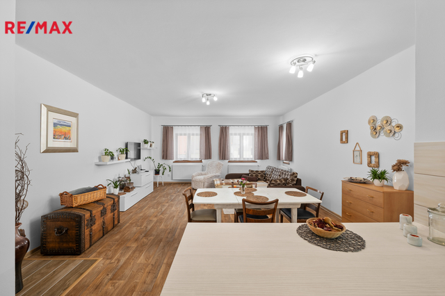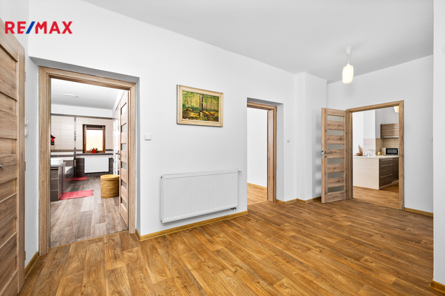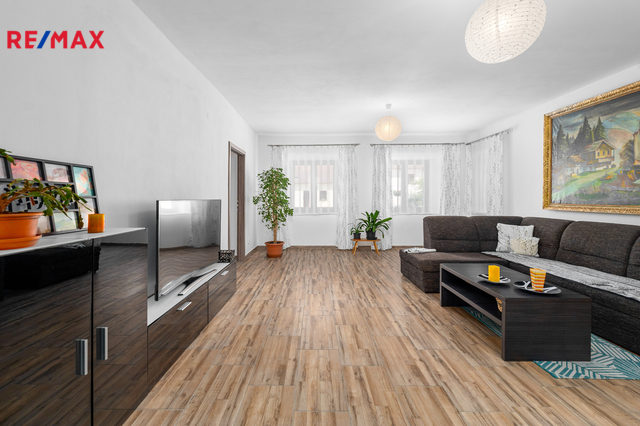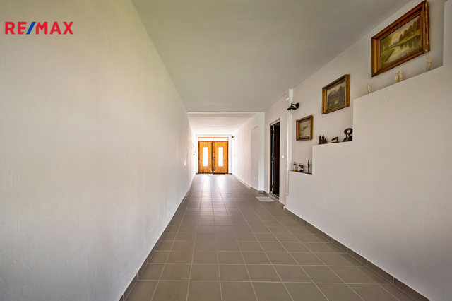 Z průjezdu domu (spojujícího zahradu s hlavním vjezdem do objektu a na pozemek), který může sloužit i jako garáž pro několik automobilů, je vstup do chodby a dále do obou samostatných bytových jednotek. V přízemí se nachází byt s dispozicí 2+1, v 1. patře je byt 3+kk. Prostorná půda nabízí možnost pro vybudování dalšího bytu (vše stavebně technicky připraveno, včetně rozvodů).