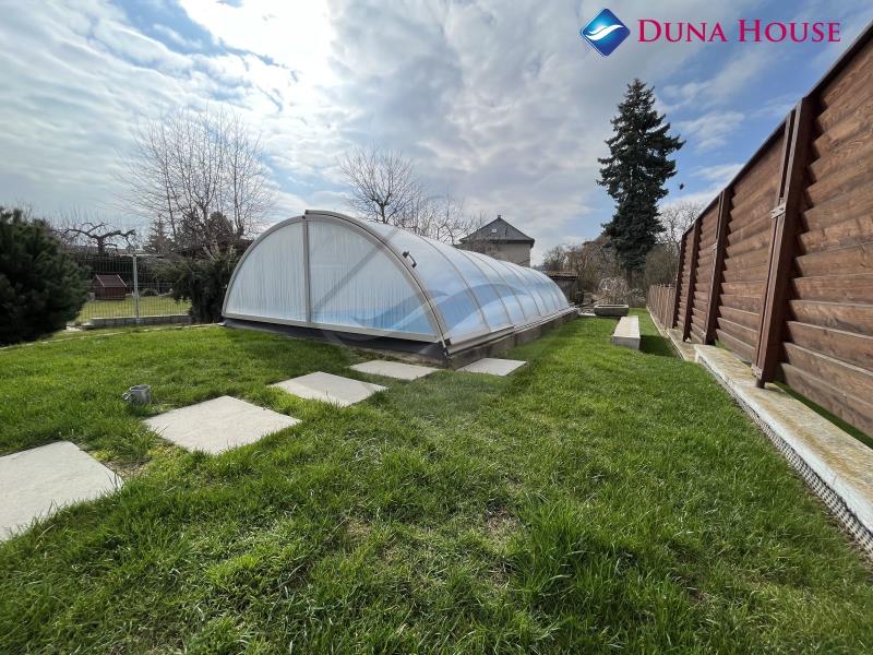 Na udržované zahradě, která je orientována směrem na jižní stranu je krytý bazén a terasa s posezením.