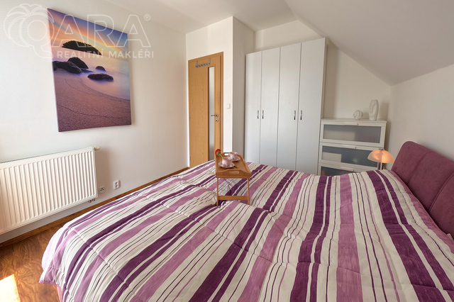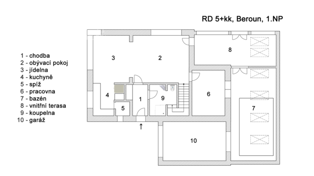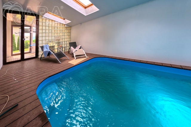 NEMOVITOST JE ÚSTNĚ REZERVOVÁNA Dovolujeme si vám nabídnout ke koupi tento rodinný dům na prestižní berounské adrese v lokalitě Na Paloučku ve vilkové čtvrti. Rodina si pochvaluje městské bydlení s nedalekou základní a mateřskou školu, obchodní zónu, relativně blízký nájezd na dálnici D5 a především klid, pohodu a bezpečí, a zároveň blízkost přírody. Patrový dům s dispozicí 5+kk, garáží, dvěma koupelnami, šatnou, a především s krytým bazénem, leží na pozemku o velikosti 1060 m2 a nabízí komfort 234 m2 celkové užitné plochy - 215 m2 užitné plochy + 19 m2 garáž. Rozhodně vás zaujme nádherná okrasná zahrada, která je tvořena zákoutími a různými ostrůvky keřů, stromků a květin. Je tu několik malých záhonků s jahodami a ovocnými stromy, a velkým bonusem je automatický závlahový systém. Srdcem domu je obývací pokoj s krbovými kamny a jídelna prosvětlená velkými okny. Na ni navazuje kuchyně se spíží. Dále tu naleznete pracovnu a koupelnu se sprchou. Krytý bazén je tou pomyslnou třešničkou a pro nové majitele je důležitá informace o jeho napojení na tepelné čerpadlo i připravenosti místa pro infra saunu. Navazující uzavřená terasa slouží k odpočinku a zábavě s přáteli. Do prvního patra se vstupuje schodištěm z obývacího pokoje a kromě ložnice, šatny a velké koupelny s vanou tu jsou další dva pokoje. Věřím, že se vám dům i toto krásné okolí vilkové čtvrti líbí. Věřím, že vás oslovilo bydlení v královském městě Berouně, které je svými hradbami, řekou Berounkou a bohatou historií i blízkostí Prahy vyhledávaným místem k životu. Kontaktujte mě a domluvte si svůj termín a čas prohlídky. Budu se těšit.