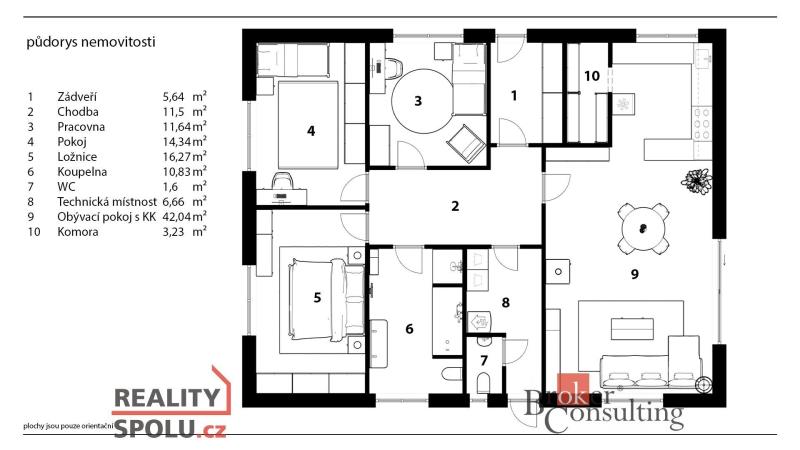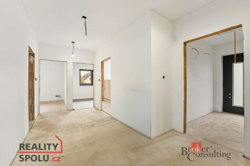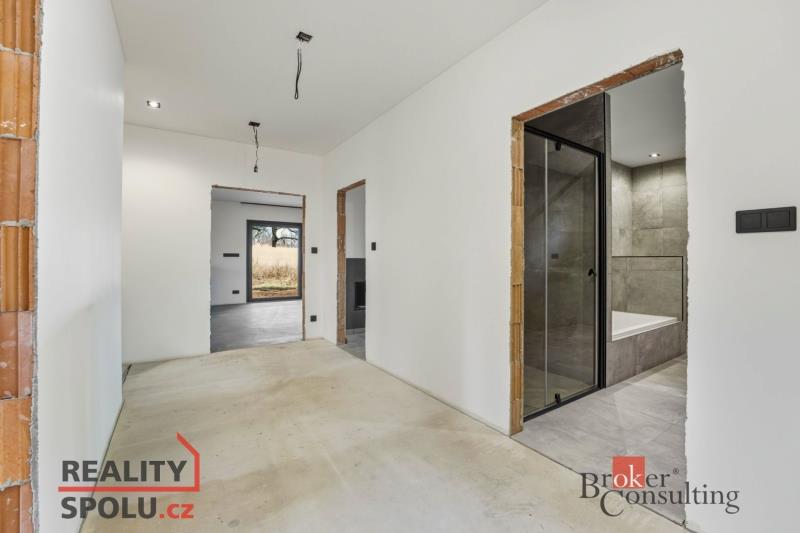 Nabízím k prodeji moderní jednopodlažní rodinný dům v obci Bezděkov u Pardubic, situovaný na rovinatém pozemku o výměře 900 m². Jedná se o novostavbu před kolaudací s užitnou plochou 123,75 m². Dispozice domu je prakticky řešena. Po vstupu se nachází zádveří a chodba, která propojuje jednotlivé místnosti – pracovnu, samostatný pokoj, ložnici, koupelnu s WC a technickou místnost, ve které je umístěno další WC. Dominantou domu je prostorný obývací pokoj s kuchyňským koutem a navazující komorou. Podkroví je pochozí a nabízí dostatek úložného prostoru. Nemovitost je napojena na veřejný vodovod, elektřinu a kanalizaci. V domě je připraveno tepelné čerpadlo určené pro vytápění podlahovým topením. Alternativně lze využít také krbovou vložku, přičemž přikládání je řešeno z technické místnosti, což umožňuje zachovat čistotu v obytném prostoru. Do technické místnosti vede samostatný vstup také z venkovní části domu. Pro úspěšnou kolaudaci je nutné dokončit finální podobu fasády, zapojit tepelné čerpadlo, osadit retenční nádrž a realizovat příjezdovou komunikaci včetně pochozích ploch kolem domu. Současně je potřeba dokončit finální úpravy v koupelně a technické místnosti, položit podlahové krytiny a osadit vnitřní dveře. PVC podlahová krytina je již zakoupena a připravena k instalaci. Na obytnou část navazuje zastřešená terasa určená k venkovnímu posezení a odpočinku. V rohu zahrady je připraven vybetonovaný základ pro budoucí zahradní domek. Dům nabízí moderní a energeticky úsporné bydlení v klidné lokalitě s dobrou dostupností do Pardubic. V případě zájmu zajistím kompletní realitní i finanční servis.