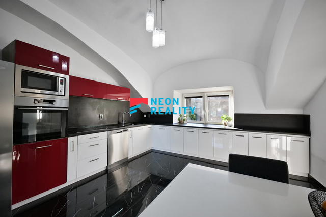 Do patra vedou točené schody s dřevěnými nášlapy. Horní patro prošlo rekonstrukcí přibližně před deseti lety, během níž bylo původní podkroví proměněno v krásný, útulný obytný prostor. Nachází se zde koupelna s rohovou vanou, toaletou a střešními okny, která interiér příjemně prosvětlují. Dále je zde jeden pokoj vhodný jako ložnice či dětský pokoj a otevřená podkrovní část, kterou lze dle potřeby snadno přizpůsobit a rozčlenit na další pokoje či pracovnu.