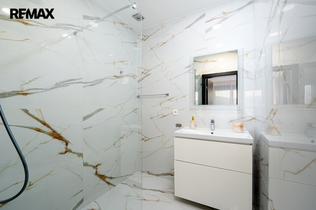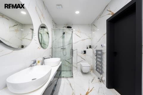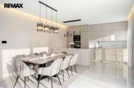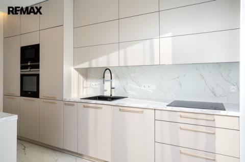 Srdcem domu je luxusní kuchyňská linka na míru, světlá, prostorná a dokonale zpracovaná, kde je radost vařit – ať už pro rodinu nebo při setkání s přáteli. Kuchyň přirozeně navazuje na obytný prostor a propojuje vaření s pohodovou atmosférou a denním světlem, které sem proudí z velkých oken.
