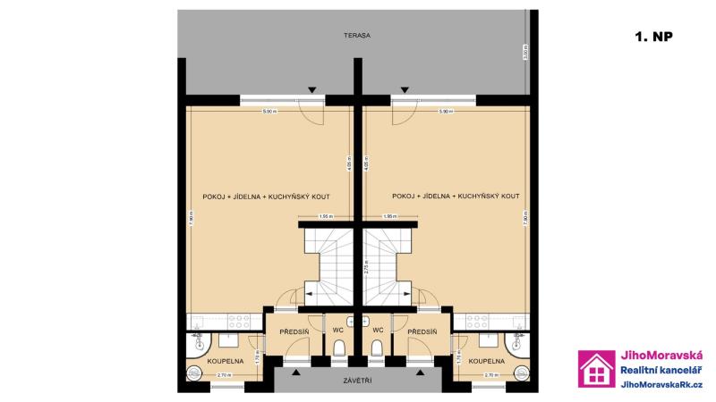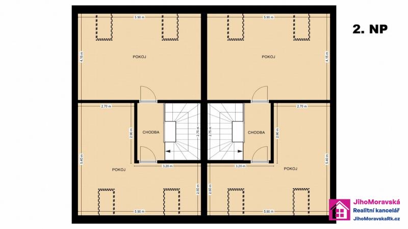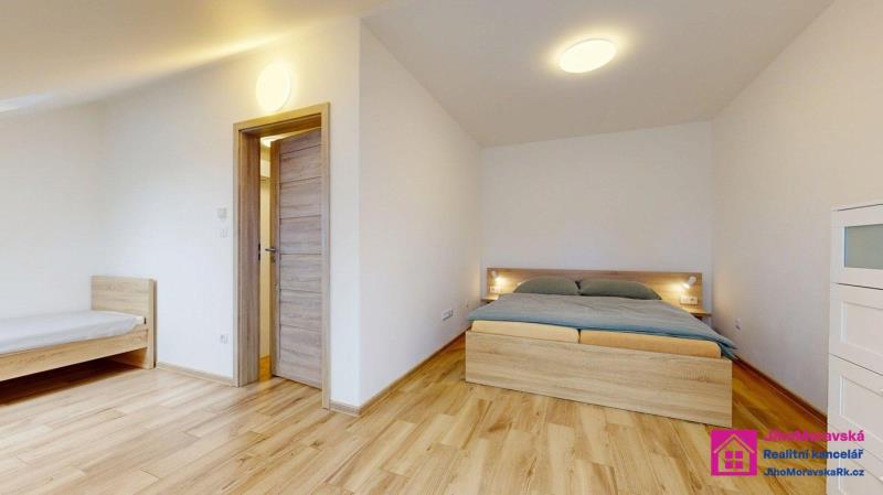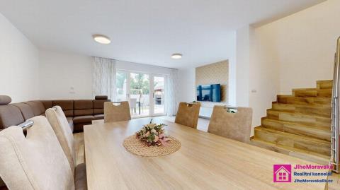 Zprostředkujeme Vám, ve výhradním zastoupení majitele, prodej novostavby rodinného domu se dvěma byty o velikosti 3+kk, terasou a společnou zahradou. Dům je postavený v ulici Kapusty č.p. 886, v městské části Charvátská Nová Ves, v okresním městě Břeclav. Celková plocha domu 234 m² s bytnou plochou 214 m². Kolaudace v 08/2021. Dispozice domu: 1.nadzemní podlaží: předsíň, koupelna (sprchový kout), toaleta, pokoj s kuch. koutem, schodiště a terasa. (oba byty) 2.nadzemní podlaží: schodiště, chodba a dva pokoje (oba byty) Půdorysy obou podlaží naleznete ve fotogalerii. Pro lepší orientaci v domě doporučuje si projít 3D virtuální prohlídku včetně zahhrady. Bytové jednotky jsou identické, jen zrcadlově otočené. Každá bytová jednotka má samostatný vchod. Za společnou terasou se nacházejí dvě parkovací stání na vlastním pozemku. Celkem můžete zaparkovat 4 osobní automobily (dva před domem a dva za domem). Aktuální měsíční náklady na provoz domu jsou ve výši 5.500 Kč (elektřina, voda a stočné). Zaujala Vás tato nabídka? Máte zájem o prohlídku domu? Prosíme všechny vážné zájemce, aby nás pro rychlé vyřízení kontaktovali pomocí odpovědního formuláře u inzerátu. Ihned k předání. V případě více vážných zájemců bude nájemce vybrán na základě parametrů stanovených pronajímatelem.