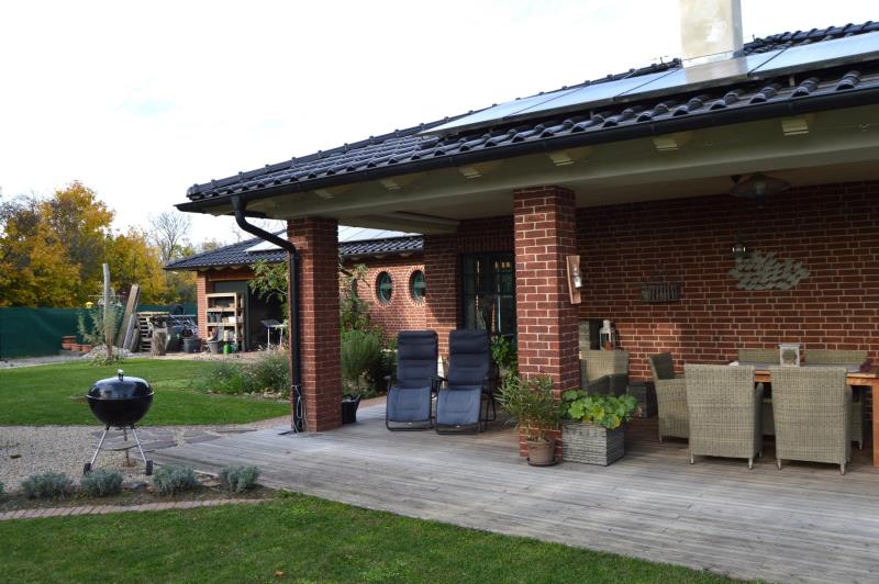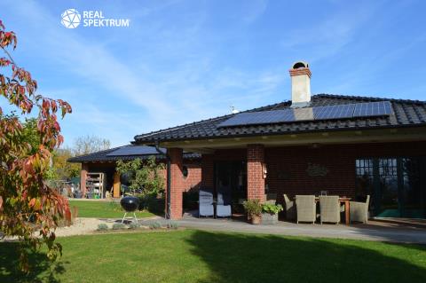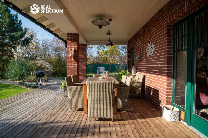 Ve výhradním zastoupení strany prodávající Vám exkluzivně nabízíme k prodeji luxusní rodinný dům (5+kk) v holandském stylu v Obřanech s nadstandardním vybavením. Celý pozemek rozkládající se na malebné ulici je oplocený včetně vlastní příjezdové cesty, jenž je opatřená automatickou vjezdovou bránou. Po příjezdu k domu je možné pohodlně využít osvětlené a zastřešené parkovací stání pro dvě auta, přičemž parkování kolem samotného domu nabízí místa pro minimálně 5-7 aut. Exteriér domu nabízí ke zpestření života koupací jezírko (25 m3) s dřevěným molem s adekvátní technologií zajišťující čistou vodu po celý rok, dále venkovní ohniště, vinný sklípek či sportovní hřiště s umělým povrchem. Dům disponuje velkou útulnou zastřešenou terasou (zastřešená část 31,2 m²; s nezastřešenou částí celkem 50 m²). Celý dům je řešen ve vysokém standartu a při jeho budování bylo myšleno na každý detail. Izolace domu je řešena holandským osvědčeným systémem 40 cm Porotherm, 5 cm vzduchová mezera a 10 cm cihelná přizdívka, což společně s vápennými omítkami a vápennými barvami zaručuje perfektní klima v průběhu celého roku. Samotné topení je řešeno pomocí tepelného čerpadla Stiebel vzduch-voda a rozváděno podlahovým topením v celém domě. Pro případ výpadku el. energie je připravena k napojení na stávající rozvaděč benzinová elektrocentrála. Stejně tak jsou nabité baterie z fotovoltaiky připravené v tomto případě dál dodávat el. energii do zásadních částí domu. Fotovoltaika umístěná na střeše o výkonu 6,3kW byla instalovaná v roce 2022, s bateriemi na uložení energie o výkonu 12 kWh a dokonce i nabíječkou na elektroauto. Důraz na ekologii byl kladen i při čerpání vody. Voda je řešena vlastním vrtem v hloubce 78 m a naprosto dostatečným výkonem (2l/s). Samozřejmostí je automatická závlaha. Interiér je laděn do tmavších tónů v kombinaci industriálního a rustikálního stylu, což jej tvoří jednak moderním a jednak útulným místem k životu. Stran designu interiéru jsou stropy v celém domě jsou řešeny bezúdržbovými dřevěnými lamelami (palubkami) ve světlém odstínu lazury. Rodinný dům je vybaven dvěma toaletami, jedním bidetem a dvěma koupelnami. V domě je i připravený prostor na vnitřní saunu včetně dostatečné elektro kapacity pro ty, kteří by si chtěli život v této skvostné nemovitosti ještě více zpříjemnit. Hlavní obytné místnosti dominuje velký krb s krbovou vložkou, což dodává místu doslova teplo domova. Pro více informací nás neváhejte kontaktovat.