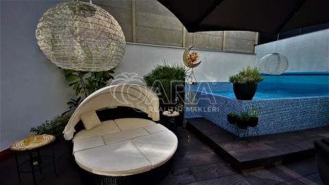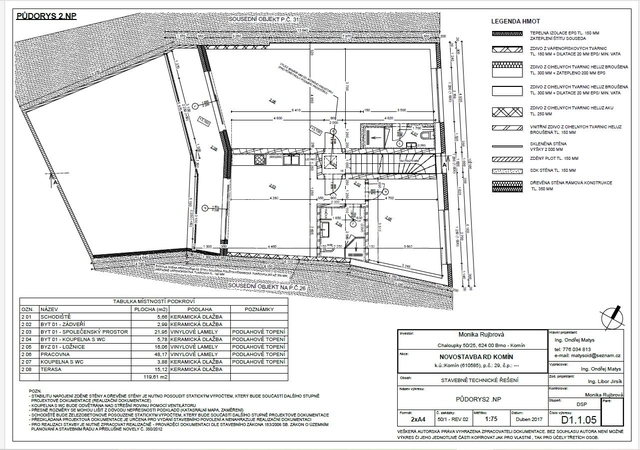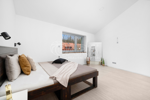 Hledáte vícegenerační prostorný dům pro početnější rodinu? Poptáváte reprezentativní sídlo pro Vaši firmu? Pídíte se po investiční příležitosti, která Vám do budoucna bude vynášet peníze? Novostavba v Chaloupkách v Brně tohle všechno splňuje. Toto plně zařízené sídlo bude přesně tím, co z něj uděláte. Exkluzivně Vám ke koupi nabízíme novostavbu rodinného domu v Brně-Komíně, ul. Chaloupky. Dům je řadový, cihlový, s celkovou plochou pozemku 212 m2. Kolaudace proběhla v roce 2022. Čím je tedy toto sídlo tak unikátní? Mezi největší přednosti tohoto jedinečného domu patří bezesporu jeho dispozice. Po nenáročné úpravě (dodělání příčky a kuchyňské linky) mohou v domě vzniknout dokonce 3 samostatné bytové jednotky: v přízemí jeden byt 3+kk s podlahovou plochou 66 m2 a v patře 2 bytové jednotky o velikosti 2+kk s podlahovými plochami 64 m2 a 44 m2. Nechybí tu prostorná garáž, bazén, 2 kuchyňské linky a 3 koupelny se sprchovým koutem a toaletou. Podlahová plocha celého domu nabízí úctyhodných 240 m2. Další přednosti novostavby: Kromě velkého potenciálu, co se týká dispozice domu, bych rád vyzdvihl skvělé umístění domu. Městská část Komín patří mezi nejvyhledávanější lokality v Brně. Novostavba je umístěna v klidné části, mimo rušnou ulici. Devizou je také parkování. Kromě garáže je zde možnost parkování před domem, kde se pohodlně vejdou 4 auta, což v dnešní době nedostatku parkovacích míst určitě není k zahození. Konstrukční a materiálové řešení: Na stavbu domu byly použity ty nejkvalitnější materiály. V domě nechybí klimatizace. Jako obvodový stavební materiál byly zvoleny cihlové tvarovky Heluz, tl. 300 mm se zateplením systémem ETICS, tl. 200 mm. Podlahy jsou keramické, v pokojích se nachází vinylové lamely, okna a vnitřní dveře jsou plastová, okna jsou zasklena izolačním trojsklem. Okna zastiňují předokenní rolety na elektrický pohon. Schodiště má železobetonovou konstrukci. Jako krytina byla použita pálená taška. Prostorná terasa orientována na západ nabízí dokonalé soukromí pro odpočinek. Velkou část terasy zastiňuje zatahovací markýza. Relaxovat můžete také v bazénu 9 m2. Vhod jistě přijde i infrasauna. Vytápění domu je řešeno elektrickým kotlem, který je napojený na podlahové topení. Ohřev TUV zajišťuje zásobník s elektrickou topnou spirálou. Dispozice: V 1. NP naleznete velký obývací pokoj 33 m2, který je propojen s terasou a bazénem 60 m2, kuchyň s novou kuchyňskou linkou 18 m2, menší pokoj 10 m2 a koupelna se sprchovým koutem s WC 5 m2. Vedle vchodu je prostorná garáž 33 m2. Ve 2. NP je velký pokoj 48 m2 (lze rozdělit na 2 menší) s vlastní koupelnou se sprchovým koutem 4 m2 a WC. Dále je zde pokoj s kuchyňským koutem 22 m2 a další pokoj 16 m2. Také tento byt má svou vlastní koupelnu se sprchovým koutem a s WC 6 m2. K oběma jednotkám náleží terasa o velikosti 15 m2. Pro více informací nás neváhejte kontaktovat.
