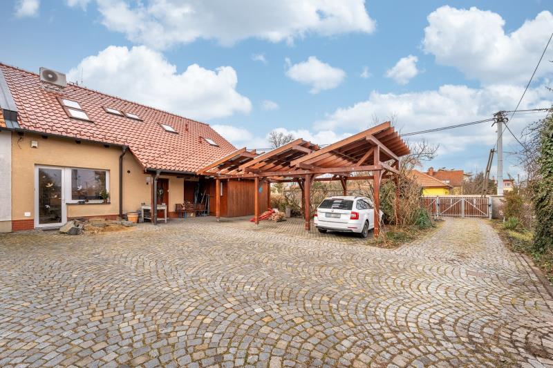 Velká zahrada a parkování – zahrada o rozloze 651 m², v přední části domu je kryté parkování pro více aut, kde je možné umístit třeba i karavan.