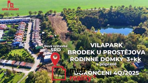 Hledáte moderní, technicky vyspělé, a především nízkonákladové bydlení v klidném prostředí blízko přírodě s vynikající dostupností do okolních měst? Pak pro vás máme novinku v Brodku u Prostějova. Objekt navrženého řadového domu „Novostavba 5 RD“ je součástí nově navržené řadové zástavby, která je řešena v návaznosti na nedávno budovanou lokalitu rodinných domů v jižní části městyse. Navrženy jsou řadové domy, dvoupodlažní, nepodsklepené. Jsou osazeny do svahu. Vstup je do 1. NP z přilehlé komunikace, vstup na terasu a do zahrady je z 2. NP balkonovými dveřmi. Objekty jsou v uliční čáře uskákány – plasticky členěny. Příchod a příjezd k řešeným RD je ze severozápadního směru z nově zpevněné komunikace, objekty rodinných domů jsou z této strany v rámci 2. NP předsazeny a venkovní plocha v úrovni 1. NP před objektem bude vydlážděná betonovou zámkovou dlažbou a bude sloužit pro parkování vozidel. Vydláždění bude provedeno investorem a bude navazovat na zpevněnou cestu. RD 2 je koncipován jako 3+kk. Vstup do objektu RD 2 je ze závětří krytého předsazeného 2. NP do chodby se zákoutím pro technické systémy domu a se schodištěm do 2. NP. Dále v rámci 1. NP ještě WC s umyvadlem. V druhém nadzemním podlaží navazuje schodiště na chodbu, ze které je vstup do ložnice, pokoje, do koupelny s vanou a s WC a do obytné místnosti – obývacího pokoje s kuchyňským koutem. Z tohoto prostoru je vstup na terasu. Část 2. NP, směrem do zahrady, je založena na zemině přímo v rámci 2. NP. Terasa je řešena ze zámkové dlažby do štěrkových vrstev. Základové konstrukce jsou řešeny jako základové desky tl. 400 mm z železobetonu s výztuží. Obvodové nosné zdivo, vnitřní nosné a nenosné zdivo je navrženo z Porothermu, z vnější strany zatepleného zateplovacím systémem s omítkou v barvě s šedými segmenty a barevnými pruhy dle pohledů. Stropní konstrukce železobetonové monolitické. Zastřešení stavby plochou střechou. Nášlapné vrstvy podlah uvnitř objektu z keramické dlažby a z vinylu. Výplně otvorů jsou řešeny plastové, zasklení trojsklo, vnitřní dveře v dřevěných obložkových zárubních. Jsou navrženy vnější žaluzie do podomítkových kastlů. VCM omítky, stropy z SDK desek pro možnost rozvodu rekuperace. Oplocení objektu pletivem na sloupky. Zastavěná plocha RD 2 82,40 m2, užitná plocha domu 87,45 m2, obytná plocha 51,20 m2, zpevněná plocha (vstup + vjezd i pod 2. NP, terasa za objektem) 54,70 m2. Celková půdorysná velikost domu RD 2 je 12,75 x 6,46 m. Vytápění domu bude řešeno podlahovým vytápěním rohožemi, v soc. zázemí ještě doplněno o topné žebříky. Zdrojem teplé vody pro vytápění a TUV je navrženo tepelné čerpadlo vzduch/voda umístěné v 1. NP, doplněné zásobníkem na 125 l. Venkovní jednotka bude umístěna na severu strany v zastíněném prostoru pod 2. NP. Jako zdroj budou na střeše nainstalovány fotovoltaické panely. Větrání řešeno decentrálními jednotkami s rekuperací. Osvětlení LED zdroji. Standard domu je nastaven formou finančních budgetů. Nesmírnou přidanou hodnotou této nabídky je aktivní spolupráce s provádějící stavební firmou, pro kterou není problém cokoliv, je-li to v souladu s projektovou dokumentací, stavebním povolením a nebrání kolaudaci domu. PENB třídy B. Městys Brodek u Prostějova nabízí vše potřebné pro rodinný život. Je zde základní škola, mateřská školka, obchody, restaurace, lékař, za pár minut se dostanete na dálnici a pak lehce do Prostějova, Olomouce nebo do Brna. Bližší informace o projektu, podmínek rezervace, systému financování apod. vám poskytne RK.