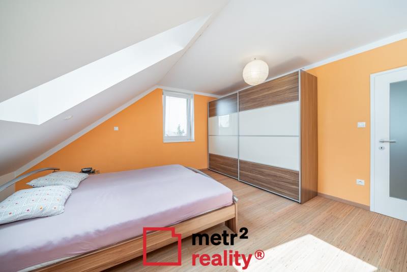 hledáte pohodlný život v hotovém velmi dobře udržovaném cihlovém rodinném domě v klidné lokalitě v Bystrovanech na ul. Polní? Ve výhradním zastoupení klienta Vám nabízíme ke koupi dvoupodlažní rodinný dům postavený v roce 2009 s dispozicí 4+1 a užitnou plochou 152 m². Dům nabízí vše, co rodina potřebuje, v přízemí je obývací pokoj (26,7 m²) s krbem s tepelnými průduchy v obývacím a jednom pokoji v patře, kuchyně s jídelnou (21,7 m²) s vestavnými spotřebiči zařízenou linkou. Dále vstupní prostor, zádveří, hala. Nechybí koupelna se sprchovým koutem a WC. Výhodou je zastřešená terasa (26,4 m²) přístupná francouzským oknem z jídelny. V podlaží jsou 3 pokoje (18,4 m², 14 m² a 12,7 m²) z toho dva se společným balkonem (10,7 m²) a třetí se šatnou (3,6 m²). A samozřejmě koupelna s vanou i sprchovým koutem. Příjemným komfortem je samostatné WC. V obou obytných podlažích je podlahové topení. Dům je celopodsklepený (77 m²) a v pozemních prostorech se nachází posilovna, prádelna a kotelna s plynovým kotlem se zásobníkem na 60 l. vody a výkonem 3,5-20 kW, sklad a garáž pro motorky, čtyřkolky či jiná terénní vozítka (s automatickými garážovými vraty a prudším sklonem vjezdu). K dispozici jsou parkovací místa v ulici. Rozlehlá zahrada 620 m² je opatřena automatickým závlahovým systémem. Dům je zařízený, připravený k nastěhování.