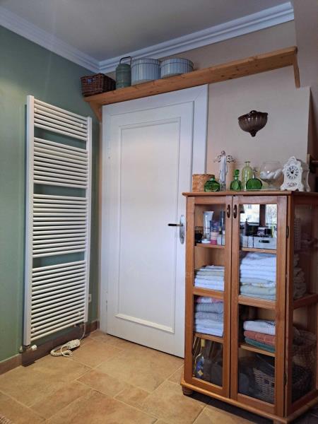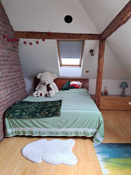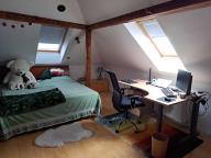Podkroví je obytné se třemi střešními okny a je zatepleno vatou 16 cm. Jsou zde krbová kamna JOTUL, zavedeno ústřední topení, podlaha plovoucí dýha buk.