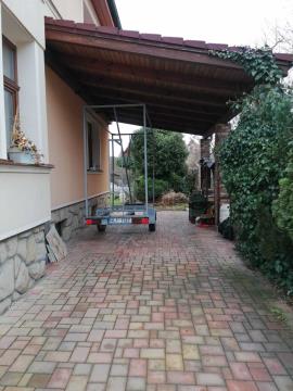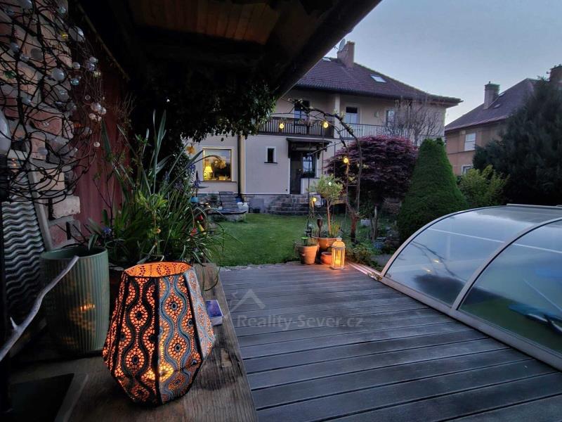 Můžete využít dvě parkovací místa, z toho jedno stání je kryté se světlou výškou pro obytný přívěs nebo obytné auto. K dispozici je bazén 7x4m se zastřešením a slanou vodou, V prostorném zahradním domku je finská sauna se sprchovým koutem a příprava na kuchyňskou linku. Dále je zde oddělená technická místnost, kde je veškerá bazénová technologie včetně čerpadla. Pod jednou střechou je venkovní prostor s kachlovým sporákem. Je zde možné vbudovat letní kuchyň s jídelnou. Stěny jsou obloženy cihlou KLINGER, na střeše je položen BRAMAC. Kolem je položena teaková podlaha a dlažba.