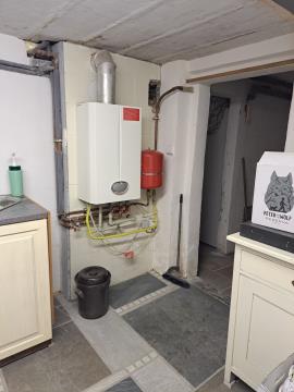 Dům je celý podsklepený - 3 místnosti spojené chodbou, kdy obvodové stěny jsou zatepleny 5 cm silnou vnitřní tepelnou izolací dánského výrobce SKAMOL, vnitřní stěny 3 cm silnou izolací. Teplo zajišťuje plynový kotel s ohřevem vody zn. IMMERGAS. Elektřina 220V/380V i plyn jsou vedeny v mědi, voda i odpady jsou vedeny v plastu, přičemž dům je napojen na obecní vodovod a kanalizaci. K dispozici je i studniční užitková voda ze studny na zahradě, 3 m hluboké. Střešní krytina BRAMAC byla dělaná v roce 2009, okna jsou dřevěná vakuová s dvojskly. Do domu je přivedeno optické vlákno a pevná telefonní linka.