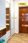 Dům B – dispoziční řešení – zádveří chodba, vstup do koupelny – sprchový kout, WC, dále máme z chodby vstup do pracovny a obývacího pokoje, který je propojený s kuchyní. V obývacím pokoji je umístěn krb, je zde výstup na zadní terasu. Schodištěm se dostaneme do 2NP., kde jsou k dispozici tři prostorné pokoje, komora, koupelna s rohovou vanou, WC.