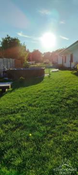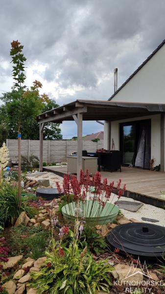 Na zahradě je venkovní posezení (terasa se zastřešenou pergolou) okrasná i užitková zahrada, kolny.
