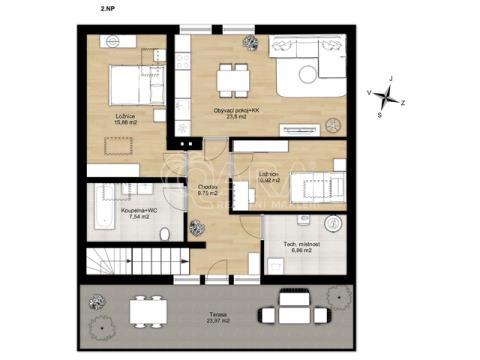 Dvě samostatná bydlení s výhledem na lesy a řeku Sázavu: investice i rodinné sídlo Nabízíme čerstvě zrekonstruovaný a zkolaudovaný dům v Choceradech, který v sobě spojuje luxusní rodinné zázemí a chytrou investici. Stavba na kopci nabízí úchvatné výhledy na lesy a údolí Sázavy a maximální soukromí. Dům je rozdělen na dvě zcela samostatné jednotky s vlastními vchody, terasami i měřením energií. Dispozice jednotek Byt A (5+kk | 170 m²): Velkorysé rodinné zázemí Přízemí: Dominantní obývací pokoj (34 m²) s kuchyňským koutem a vstupem na prostornou terasu (35 m²). Ložnice s francouzskými okny a přímým vstupem na zahradu, technická místnost, WC a koupelna. Patro: Tři prosvětlené pokoje, dvě koupelny a hala. Byt B (3+kk | 75 m²): Podkrovní byt s potenciálem Útulná jednotka s vlastním balkonem (27 m²). Obývací pokoj s kuchyní (23,6 m²), dvě ložnice se střešními okny a koupelna. Ideální jako vícegenerační bydlení, domácí kancelář nebo investice - výnos z pronájmu pokryje pohodlně celý provoz či část hypotéky. Technické řešení a úspory Dům prošel kompletní rekonstrukcí s důrazem na detail a nízké náklady. Konstrukce: Keramické tvárnice + 16 cm šedý polystyren. Okna: Sedmikomorová (stavební hloubka 84 mm) pro dokonalý klid a izolaci. Vytápění: Podlahové vytápění RENOVA v celém domě. Každý byt má vlastní elektrokotel a měřidla. Exteriér: Kombinace travertinu, kamene, dřeva a silikonové omítky. Zahrada a okolí Zahradu navrhl zahradní architekt pro radost i užitek. Najdete zde nový trávník, ovocné stromy, záhony a skleník pro bio zeleninu. K tomu zděný zahradní domek vhodný jako dílna či letní kuchyně. Lokalita a dostupnost Chocerady jsou rájem pro sportovce (rybaření, kanoe, cyklistika) a rodiny s dětmi. Občanská vybavenost: Školka i škola jsou pár kroků od domu, což znamená ranní pohodu a konec stresu s cestami do školy. Vyhlášené restaurace v okolí - Mlsnej Bejček, Na Marjánce. Dostupnost: Praha (D1) – 30 minut, autobus na Metro C (Opatov/Chodov) – 45 minut. Spojení zajišťuje i romantický Posázavský Pacifik. Chcete stihnout léto v novém domě s výhledem? Ozvěte se a domluvíme si osobní prohlídku. Těšíme se na viděnou v Choceradech.