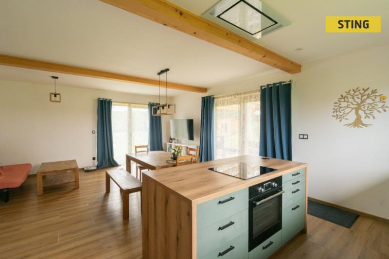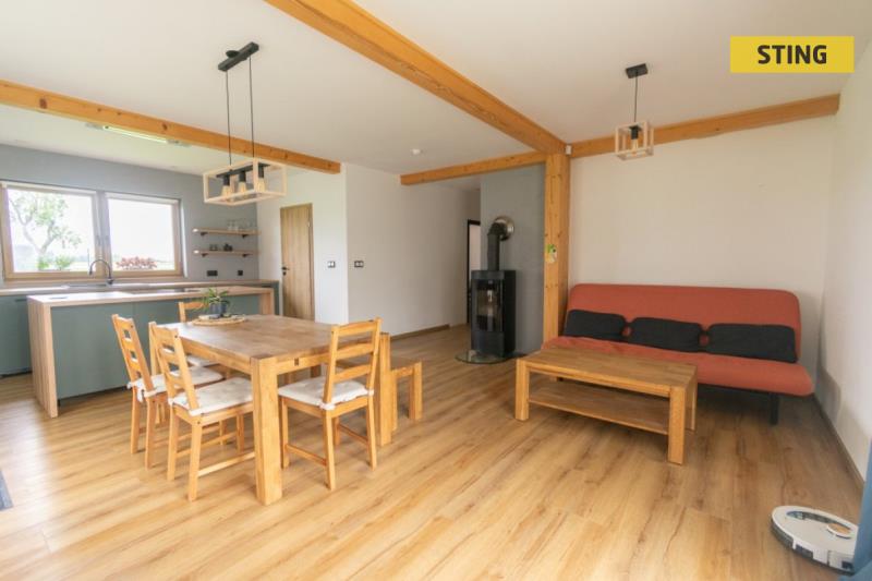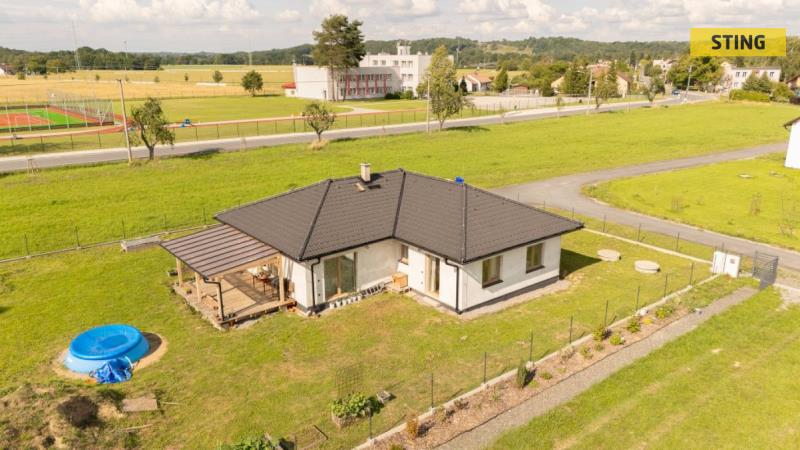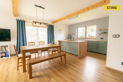 Nabízíme Vám ke koupi novostavbu rodinného domu 4+kk, která se nachází ve vyhledávané lokalitě v obci Chotěbuz. Zastavěná plocha nemovitosti činí 142 m2, nemovitost je jednopodlažní. Za vstupem do domu se nachází předsíň, ze které se dostaneme chodbou do obývacího pokoje s jídelnou a kuchyní. Z obývacího pokoje se vstupuje na prostornou terasu orientovanou jižním a západním směrem. V domě jsou dále tři neprůchozí pokoje, které je možné využít jako ložnici, dětské pokoje, případně jako pracovnu. V moderní a velmi prostorné koupelně se nachází vana a sprchový kout. Dům dále disponuje technickou místností a spižírnou. Vytápění domu je řešeno tepelným čerpadlem, v domě je podlahové topení, v obývacím pokoji jsou krbová kamna. Pitná voda z obecního vodovodního řadu, ohřev vody zajišťuje rovněž tepelné čerpadlo. Odpad - ČOV, střešní krytina - betonová taška. V celém domě jsou plastová okna s trojskly. Jedná se o dřevostavbu. K nemovitosti náleží oplocená zahrada o výměře 1058 m2. Dům se nachází v klidné části obce Chotěbuz, kde nalezneme veškerou občanskou vybavenost (škola, školka, obchod, dětské hřiště, pošta, autobus). Nemovitost skýtá možnost bydlení stranou městského ruchu s dostatkem zeleně v bezprostředním okolí, avšak zároveň s výbornou dostupností do okolních měst. Nemovitost nabízí výbornou dostupnost do Českého Těšína, Karviné či Frýdku-Místku, jelikož se nachází v dosahu přivaděče na dálnici D48. Velmi pěkné, klidné a moderní bydlení. Pro více informací a prohlídku domu mne kontaktujte. Do konce února 2026 nabízíme prostřednictvím našeho partnera úrokové sazby od 4,29 % p.a. Více informací Vám sdělí náš specialista na prohlídce.