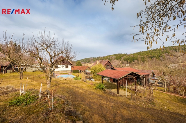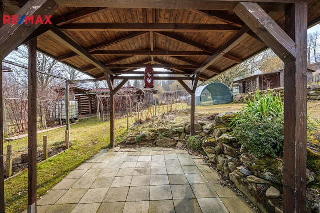 Prodej domu s pozemkem – Lučenice 303, Chroboly. Nabízíme ke koupi nemovitost situovanou v osadě Lučenice, části obce Chroboly. Lučenice se nachází cca 1,5 km západně od Chrobol a cca 6 km od okresního města Prachatice. Na pozemku s celkovou plochou 1.376 m2 se nachází hlavní obytná stavba (kolaudována jako stavba pro rodinou rekreaci a cca 15 roků využívána pro trvalé bydlení) s vedlejšími a doplňkovými objekty, příslušenstvím a zařízením. Hlavní obytnou budovou je zděná, podsklepená, dvoupodlažní stavba (obytné přízemí + podkroví) se zastavěnou plochou 67 m2. Dispozice přízemí sestává z prosklené verandy, hlavní chodby, prostorného obývacího pokoje s navazující kuchyňskou a jídelní částí, dalších 2 samostatných jižně orientovaných pokojů a koupelny s umyvadlem, sprchovým koutem a WC. V podkroví (přístup po dřevěných schodech z hlavní chodby) se nalézá velký obytný prostor (8,7 x 5,7 m) s možností dílčího předělení a rozdělení. Objekt je částečně podsklepený, tento prostor (původně garáž) je v současnosti využíván jako skladové prostory (sklep, spíž) a dílna. Nemovitost je napojena na veřejný rozvod elektřiny (230/400 V). Vytápění domu je zajištěno krbovými kamny (dřevo, pelety) v přízemí a v podkroví. Ohřev vody: elektrickým ohřívačem. Zdroj vody: vrt na vlastním pozemku. Odpad: jímka. Dům splňuje energetickou náročnost třídy B = úsporná. Další objekty, které se na pozemku (zahradě) nachází: - samostatná garáž s navazujícím krytým parkovacím stáním a další zpevněnou plochou - dřevěný zahradní domek (venkovní kuchyně s posezením a grilem) s navazujícím zahradním altánem - dílna + sklad - garáž = kolna na zahradní techniku - přístřešek na dřevo - 2 x skleník + 1 x foliovník - bazén - 2 x zahradní jezírko s regulací a filtrací Přístup na zahradu, ke garáži i k domu je z veřejné komunikace. Parkování je možné i před objektem. Nemovitost s možností okamžitého užívání, určená k trvalému případně rekreačnímu bydlení, s vlastním pozemkem zajišťujícím dostatek prostoru pro relaxaci a vyžiti, situovaná v místě s dobrou dopravní dostupností (bus, vlak) a v blízkosti přírody = hlavní znaky této nabídky. Pro více informací nebo v případě zájmu o prohlídku mne prosím kontaktujte na níže uvedených kontaktech. Prodávající si vyhrazuje právo vybrat kupujícího na základě jím zvolených kritérií.