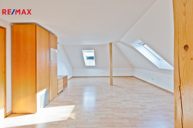 V obytném podkroví se nachází chodba se vstupy do dalších tří pokojů a koupelny s WC. Koupelna je zatím nedokončená, velkou výhodou je, že si ji každý může zařídit dle vlastních představ. Výměry jednotlivých místností a jejich dispozice jsou uvedeny ve fotogalerii.