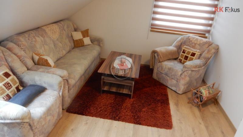 Přízemí (64 m²): prostorný obývací pokoj s kuchyňským koutem, ložnice s šatnou, koupelna s WC a technická místnost.