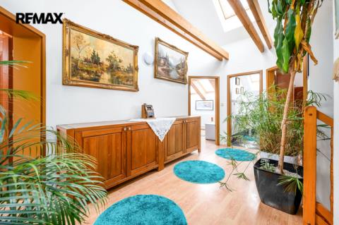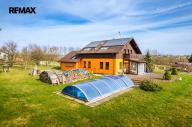 Okolo celého domu je velmi prostorná zahrada o výměře 3167m2, kde je jezírko, skleník, krytý bazén a velké ovocné stromy. Zahrada nabízí opravdu dostatečné soukromí.