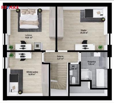 Oblíbený dvojpodlažní rodinný dům se sedlovou střechou. Rodinný dům 5+1 (147 m2) v obci Divec. Ve spolupráci s firmou Haas Fertigbau s.r.o. nabízíme výstavbu rodinného domu, který se bude nacházet v obci Divec jen 1,5 km od hranice města Hradce Králové. Dům je navržen jako patrový, nepodsklepený se sedlovou střechou. Dům Avanti 2 (5+1) je dispozičně řešen tak, že ze zádveří ( 3,5 m2) vcházíme přes chodbu (3 m2) do velkého obývacího pokoje (26,5 m2) s jídelnou a kuchyní ( 24,5 m2). Z chodby do pracovny (13 m2), WC (4 m2). Zároveň vedle zádveří se nachází technická místnost (3,7 m2). Z obývacího pokoje s jídelnou se po schodišti dostaneme na galerii (3,7m2) ze které jsou zpřístupněny všechny pokoje v patře jako je pokoj (16 m2), ložnice (19 m2), druhý pokoj (20,2 m2), koupelna (7,8 m2) a druhé WC (1,9 m2)