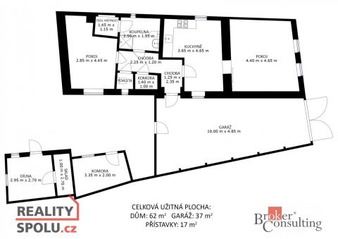 Útulný rodinný dům 2+1 se zahradou – ideální pro bydlení i rekreaci Hledáte klidné bydlení nebo chalupu na víkendy? Tento rodinný dům v obci Dobelice nabízí pohodovou atmosféru, dostatek soukromí a hlavně prostornou zahradu, kde si užijete odpočinek, zahradničení i rodinná setkání. Dobelice jsou klidná obec obklopená přírodou, ideální pro rodinné bydlení i chalupaření, s dobrou dostupností do Znojma. Dům se nachází v klidné části obce. Je vhodný jak pro rodinu s dětmi, tak pro starší pár nebo jako chalupa k odpočinku a nabytí energie. Nemovitost má celkový pozemek o výměře 1172m2, který poskytuje spoustu prostoru pro relax, grilování nebo vlastní zahradní projekty. Podrobnější dispozice: - Celková užitná plocha činí 62m2 - Kuchyně 14,5m2 - Obývací pokoj 20,5m2 - Ložnice 12m2 - Koupelna 4,9m2 - Zastřešený průjezd garáž 37m2 - Přístavky 17m2 (sklad, dílna, apod.) Výhody domu - Plastová okna a vchodové dveře - Plechová krytina střechy, konstrukce v dobrém stavu - Betonové podlahy v celém domě, plovoucí podlahy v kuchyni a obývacím pokoji - Ústřední vytápění kotlem s podavačem na tuhá paliva - nízké náklady na vytápění - Nemovitost je vhodná jak pro trvalé bydlení, tak i jako rekreační dům v atraktivní přírodní oblasti - Dostupnost do větších měst - Znojmo 20min, Brno 45min - A autem jste do 30min v turistické vinařské oblasti Pálavy :) Pro sjednání prohlídky nás kontaktujte.