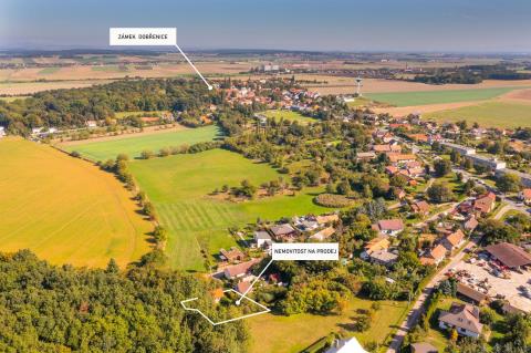 Možná právě Vás by mohla oslovit naše nová nabídka. Jedná se o prodej, dle evidence, rodinného domu, ale spoustu let slouží jako chalupa. Umístěný je v klidném místě na okraji obce Dobřenice v sousedství lesa. Celková výměra pozemku činí 947 m2 a je částečně svažitý. Jeho svažitost je právě jeho přednost, protože při umístění mobilního domu na tomto pozemku ve svahu dochází k výhledu přes střechy do dáli, a to na dobřenický zámek.