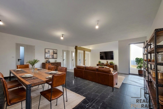 Ve výhradním zastoupení nabízím k prodeji moderní novostavbu rodinného domu 5+kk v žádané a klidné lokalitě v Dobšicích u Znojma, na ulici Výsluní. Jedná se o výjimečnou nemovitost, která vznikla v této části obce jen zřídka – kombinace nadčasové architektury, velkorysého prostoru a kvalitního zpracování činí z domu nabídku, která se v této lokalitě objevuje jen výjimečně. Dům má užitnou plochu 246 m² a celkovou plochu 301 m². Je postaven v energeticky úsporném standardu B, který zaručuje nízké provozní náklady a vysoký každodenní komfort. Velkorysost dispozic i kvalita provedení jsou prvky, které se u současné výstavby objevují spíše výjimečně. Interiér nabízí prostorný obývací pokoj s přípravou na kuchyňskou linku a přímým vstupem na terasu, několik samostatných pokojů – některé rovněž se vstupem na terasu – dvě koupelny, šatny a technické zázemí. Podlahové vytápění v kombinaci s tepelným čerpadlem zajišťuje příjemnou teplotu po celý rok. V 1. NP se nachází obytná část s terasou a přímým vstupem na zahradu o rozloze 757 m². Celková výměra pozemku činí 958 m², což poskytuje dostatek prostoru pro soukromí, relax i rodinné aktivity. Pozemek této velikosti je v rámci Dobšic spíše raritou. Na pozemku je instalována retenční nádrž na dešťovou vodu pro efektivní hospodaření s vodou. Ve 2. NP se nacházejí dva další pokoje a otevřená galerie, vhodná jako pracovna, herna nebo relaxační zóna. Součástí domu je garáž, dvě parkovací místa na vlastním pozemku a sklep o velikosti 16 m². Dům je napojen na elektřinu, veřejný vodovod, kanalizaci a internetové připojení. Plynová přípojka je připravena na hranici pozemku. Dům se nachází v jedné z nejvyhledávanějších částí Dobšic s výbornou dostupností do Znojma. V okolí je kompletní občanská vybavenost – školka, škola, obchodní centrum i sportovní areál. Lokalita je dlouhodobě ceněna pro svůj klid, stabilitu a vysokou hodnotu nemovitostí. Nemovitost je vhodná jak pro komfortní rodinné bydlení, tak i pro kombinaci s podnikáním či jiným účelovým využitím. Jedná se o nabídku, která se na trhu objevuje opravdu jen výjimečně. Pro více informací nebo domluvení prohlídky mě neváhejte kontaktovat.