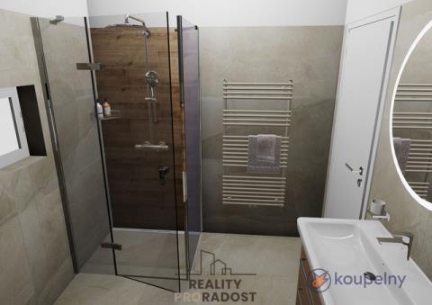 b) nebo stavbu zahrnující kompletní sanitu, toaletu a koupelnu včetně obkladů a dlažeb, interiérové dveře, veškeré podlahy a povrchy včetně obkladu schodiště + zábradlí, dodávku elektro bez venkovních a vnitřních svítidel, bez kuchyňské linky. Příprava na fotovoltaiku.